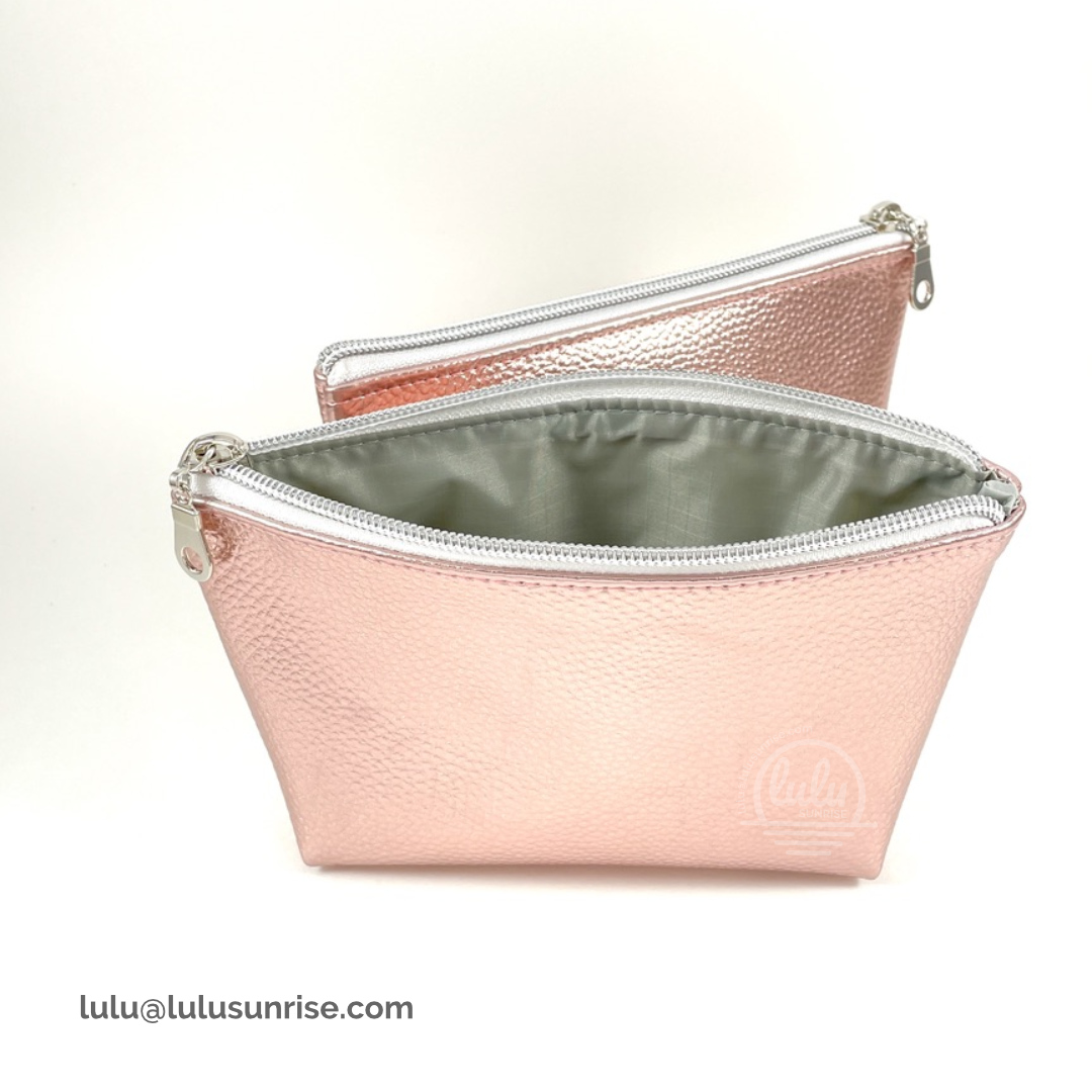 This small make up bag is made of soft to the touch vegan leather, the lining is made of light water resistant fabric.
